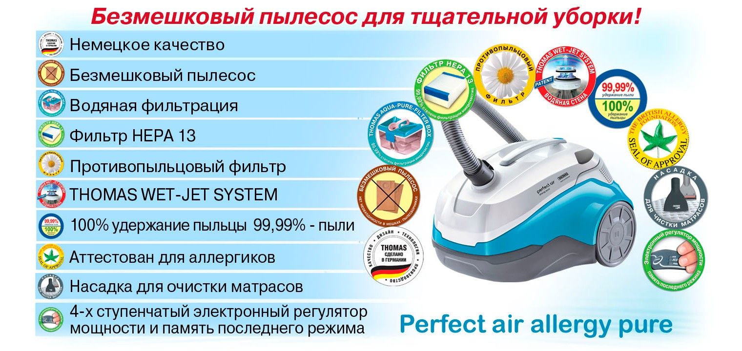 Основные преимущества пылесоса THOMAS PERFECT AIR ALLERGY PURE: