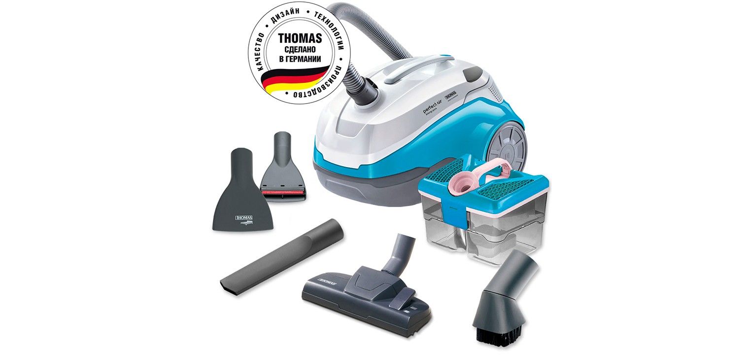 THOMAS PERFECT AIR ALLERGY PURE — безмешковый пылесос премиум-класса с запатентованной системой водяной фильтрации THOMAS Aqua-Pure-Filterbox. Специально для аллергиков и семей с маленькими детьми.