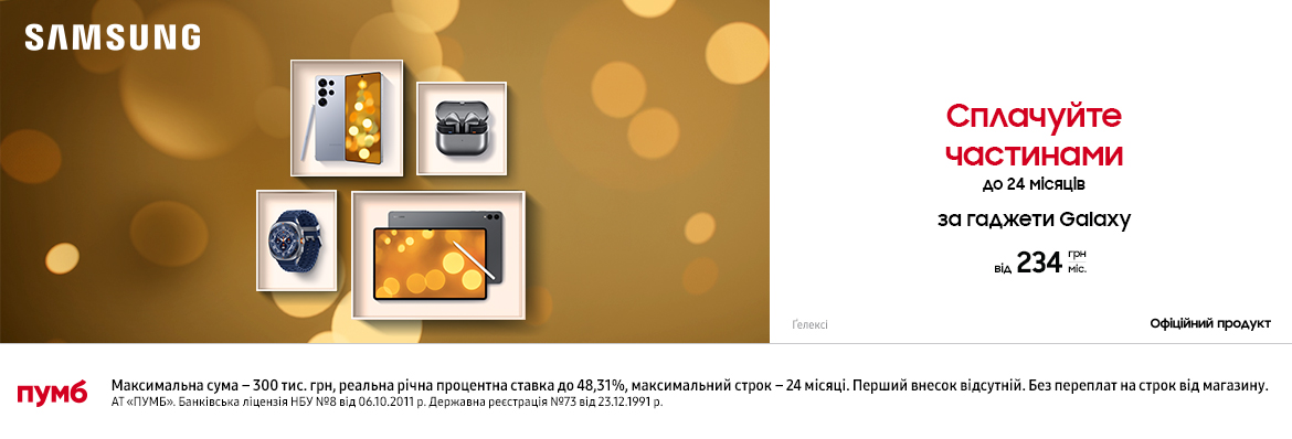 Сплачуйте частинами до 24 за гаджети Galaxy
