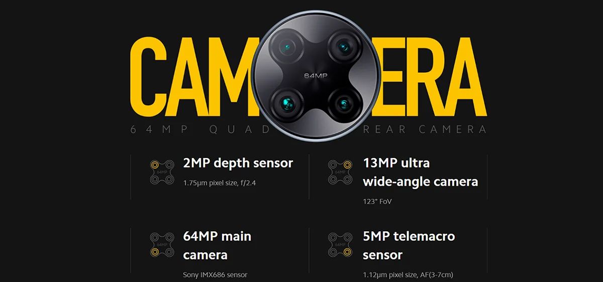 Кроме того, данная модель Poco оборудована 13-мегапиксельной широкоугольной камерой с углом обзора 123 градуса. Она способна вместить в одном кадре еще больше объектов, что делает ее отличным инструментом для создания пейзажных или групповых снимков. Также гаджет оборудован 2-мегапиксельным датчиком глубины, который способен добавить на фото эффект боке. Производитель заявляет, что основная камера смартфона позволит получить качественные фотографии при съемке в условиях плохого освещения. Также она поддерживает HDR, электронную стабилизацию видео, а также поддержку записи видео 8K при 30 fps. Кроме того, в данном девайсе задействована выдвижная селфи-камера с матрицей на 20 Мп. Она оснащена специальной системой датчиков, при помощи которых смартфон способен определить падение и быстро спрятать камеру в корпус, защищая ее от ударов.