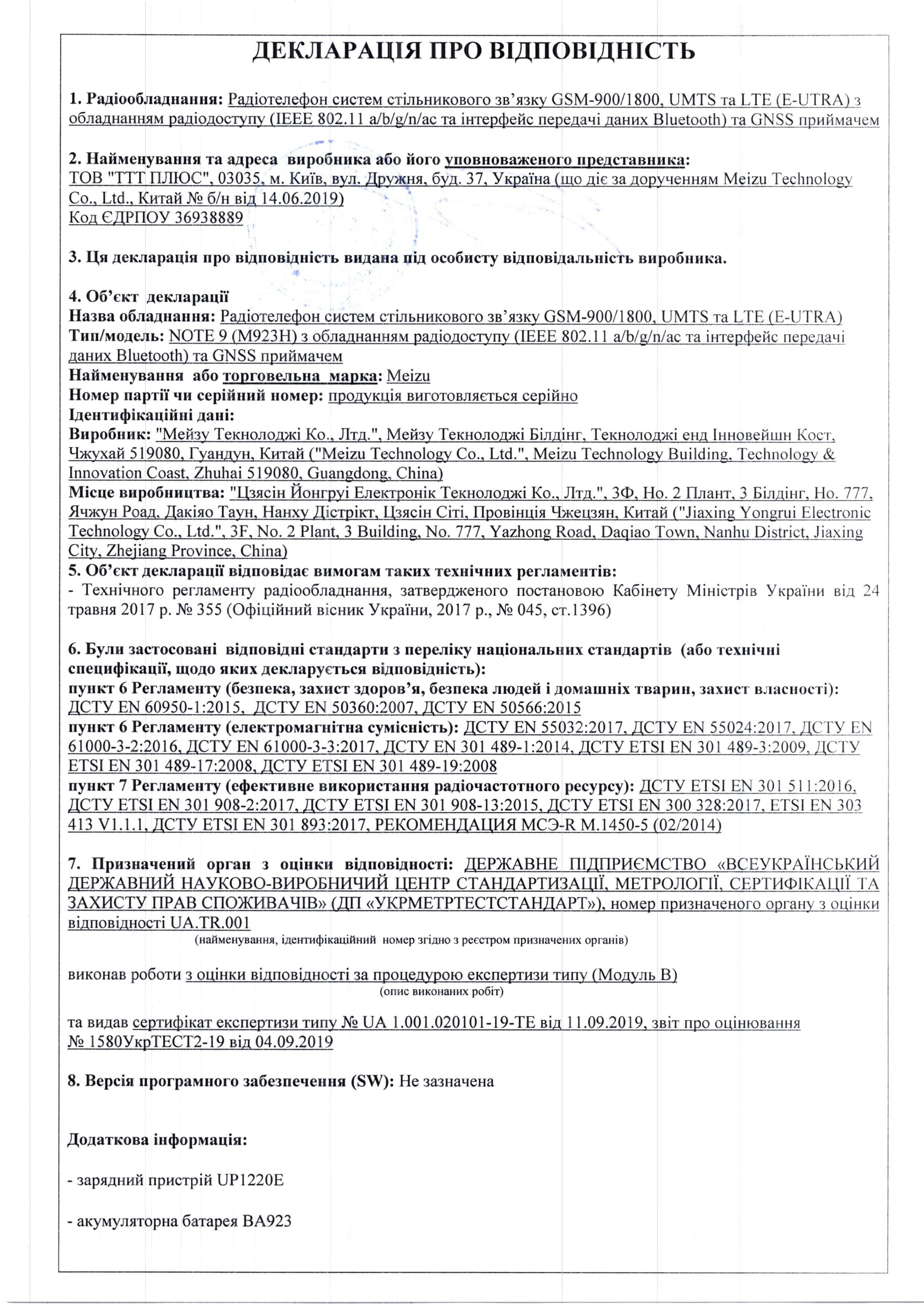 Meizu NOTE 9 (M923H)