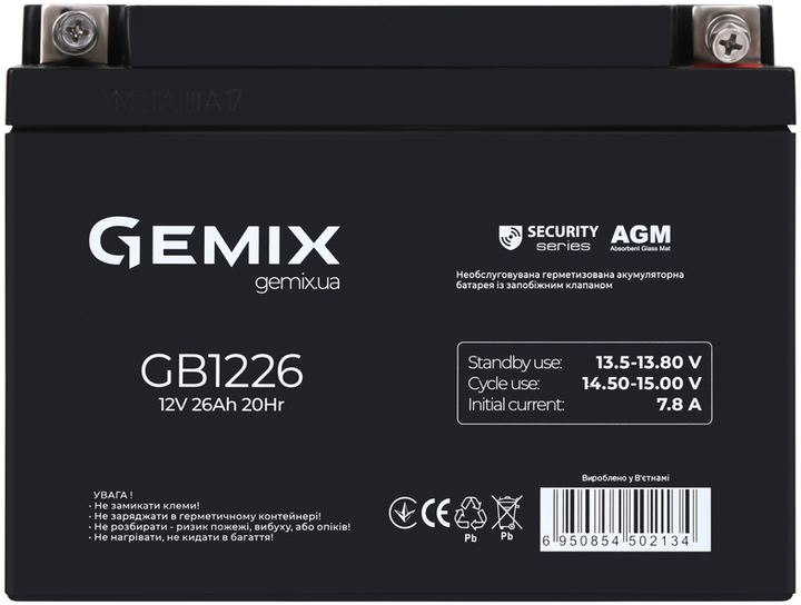 -       Описание      Герметичные VRLA свинцово-кислотные аккумуляторы GEMIX серии GB специально разработаны для эксплуатации в слабо токовых системах. Изготавливаются по технологии AGM (электролит, абсорбированный в стекловолоконном сепараторе). Аккумуляторы GEMIX серии GB обладают превосходным соотношением цены и качества. Отлично подходят для использования в охранно-пожарных и других системах безопасности. Соответствуют международным стандартам безопасности, рекомендованы для применения в системах контроля и управления доступом.
