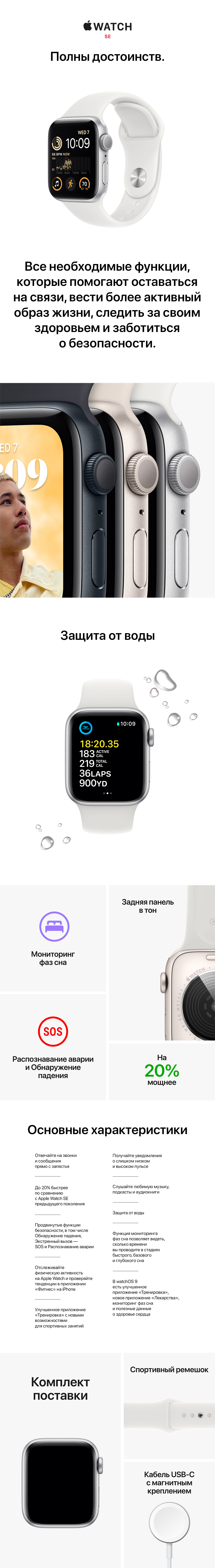 Apple Watch SE (2022) GPS 40mm Starlight Aluminium Case with Starlight Sport Band (MNJP3UL/A) (185580) - Уценка