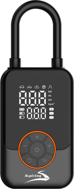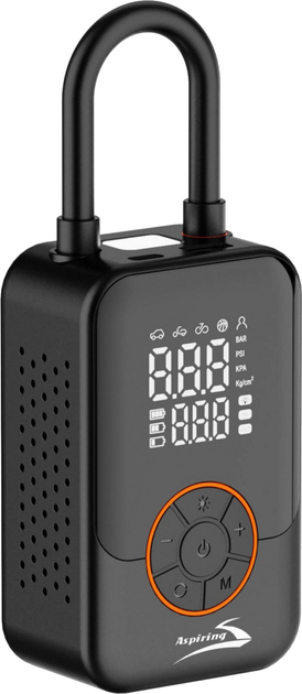 -       Описание      Портативный автокомпрессор Aspiring Storm 5 Power Bank, 23L (ST40PB) — это многофункциональное устройство, сочетающее компактность, мощность и универсальность, что делает его незаменимым помощником как в городе, так и во время загородных поездок. Этот компрессор создан для быстрой и эффективной накачки автомобильных шин, велосипедных колес, спортивного инвентаря и других надувных изделий. Благодаря встроенной батарее, функции Power Bank, фонарику и стробоскопу Aspiring Storm 5 является идеальным решением для автолюбителей, путешественников и тех, кто ценит удобство и надежность. Производительность 23 литра в минутуКомпрессор обеспечивает быструю накачку благодаря производительности 23 л/мин. Например, шину 195/55R15 можно накачать примерно за 8 минут, что позволяет оперативно справляться с задачей даже в экстренных ситуациях. Высокая производительность делает его эффективным для накачки не только автомобильных шин, но и мячей, надувных матрасов, лодок и других предметов. Максимальное давление до 150 PSI (10.8 BAR)Мощность компрессора позволяет достигать давления до 10.8 BAR, что значительно превышает стандартные требования для шин легковых автомобилей (2-3 BAR). Это обеспечивает запас мощности для работы с различными типами шин и надувных изделий, включая мотоциклы, велосипеды и спортивный инвентарь. Встроенный цифровой манометрAspiring Storm 5 оснащен точным цифровым манометром с LED-экраном, который позволяет легко контролировать давление в шинах. Функция автоматического отключения при достижении заданного давления обеспечивает безопасную эксплуатацию и предотвращает перекачивание. Диапазон рабочих температур (-20°C до +60°C) гарантирует стабильную работу в любых погодных условиях. Функция Power Bank (4000 mAh)Встроенная батарея емкостью 4000 мАч позволяет использовать компрессор как портативное зарядное устройство для смартфонов, планшетов и других гаджетов. Разъемы Type-C и USB обеспечивают быструю зарядку, что делает устройство особенно полезным в путешествиях, где доступ к розеткам ограничен. Работа от батареи и прикуривателя (12V)Компрессор работает как от встроенной батареи, так и от автомобильного прикуривателя, что обеспечивает гибкость в использовании. Время автономной работы до 20 минут позволяет накачать несколько шин на одном заряде, а время зарядки (до 3 часов) обеспечивает быстрое восстановление работоспособности. Компактность и портативностьС весом всего 420 г и размерами 127х79х42 мм, Aspiring Storm 5 легко помещается в бардачок автомобиля или рюкзак. Корпус из прочного пластика устойчив к ударам и обеспечивает продолжительный срок службы. Фонарик и стробоскопВстроенный фонарик обеспечивает длительное освещение, что пригодится при работе в темное время суток. Функцию стробоскопа можно использовать как аварийный сигнал для привлечения внимания в экстренных ситуациях, повышая безопасность на дороге. Четыре режима работыУстройство поддерживает четыре режима работы, позволяющие настроить его для различных задач: накачка автомобильных шин, велосипедных колес, мячей или других надувных изделий. Универсальные насадки, входящие в комплект, обеспечивают совместимость с разными типами клапанов. Низкий уровень шумаУровень шума до 75 децибел делает работу компрессора комфортной даже в тихих условиях. Циркуляционная система охлаждения предотвращает перегр