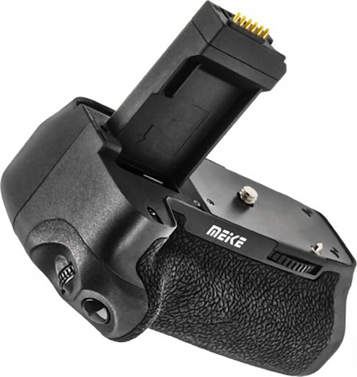 Батарейный блок Meike Canon 760D для фотоаппаратов Canon 760D. Корпус батарейного блока и прорезиненные вставки имеют ту же фактуру, что и фотоаппарат, благодаря чему не нарушается общий вид. Эргономичная конструкция рукоятки батарейного блока позволяет более удобно держать фотокамеру при съёмке в вертикальном положении. В качестве источника питания блока Canon 760D одна или две специальные аккумуляторные батареи LP-E17. Для удобства съёмки вертикальных кадров, на рукоятке расположены дополнительная спусковая кнопка затвора. Короткий спусковой кабель соединяет батарейный блок с портом для дистанционного управления спуском затвора. Имеется встроенный разъём для крепления штатива. Батарейный блок для Canon 760D незаменим для фоторепортеров, свадебщиков, которым очень важно не упустить хороший кадр из-за севшего аккумулятора. Более того, камеры Canon 760D с батарейным блоком выглядят намного солидней.