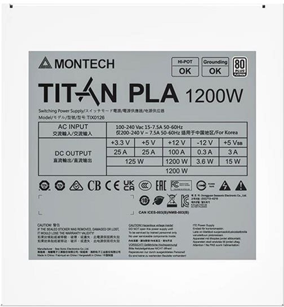 MONTECH TITAN PLA 1200W Платиновый стандарт питания