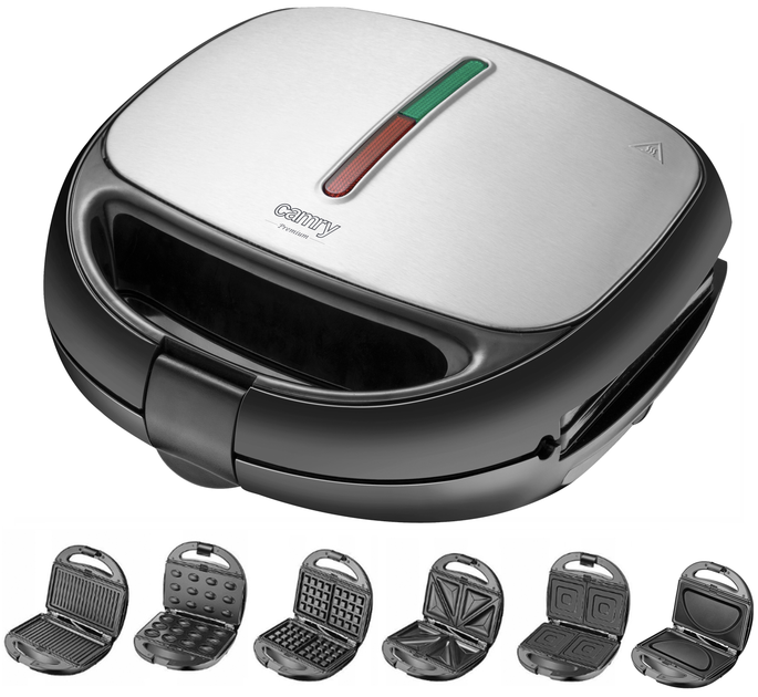 Сэндвичница Camry CR 3057 имеет шесть функций в одном устройстве. Благодаря высокой мощности в 1200 Вт устройство позволяет не только поджаривать сэндвичи, но и жарить блюда на двустороннем гриле, выпекать хрустящие вафли и печенье. Прибор имеет 5 типов сменных тарелок: для тостов (тарелка с треугольниками для более тонких бутербродов), для хлебных сэндвичей (тарелка с квадратными углублениями для более толстых бутербродов), для гриля (тарелка с продольными бороздками), для вафель (пластина в клетку), печенья (тарелка с выемками для шариков теста), для омлета (тарелка с круглым углублением).