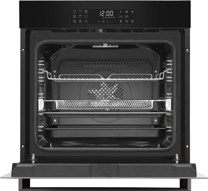 - Характеристики Общие характеристикиОснащениеДоводчик дверцы , Дисплей , Наличие вилки , Наличие шнура питания , ПодсветкаКомплектацияДеко AirFry , Духовой шкаф , Глубокий противень , Решетка , ИнструкцияМощность подключения3600 ВтНапряжение220 - 240 ВГарантияГарантия: 12 месяцевОбъемУправлениеСистема очисткиКоличество программ12Тип гриляКоличество стекол дверцыПодсветкаКласс энергопотребленияAТип направляющихМатериалыМатериал панели управленияСтеклоМатериал дверцы духовкиСтеклоГабариты, Цвет, ВесШирина595 ммВысота595 ммГлубина575 ммЦветФункцииДополнительные функцииДисплейДисплей