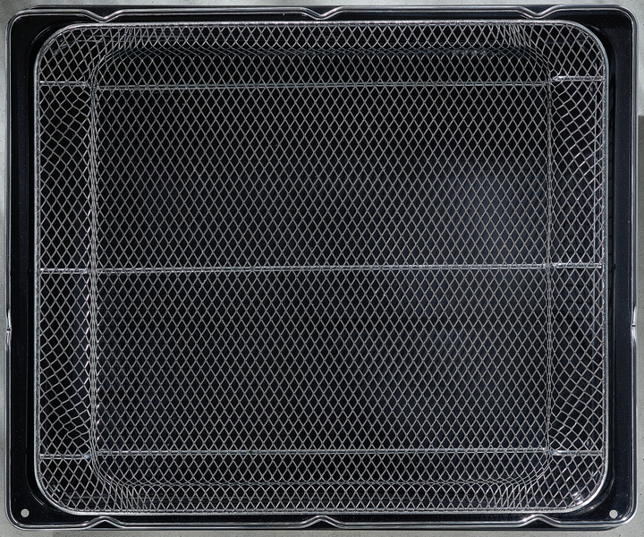 Хрустящие блюда без использования масла и жира? Жареная еда одновременно легкая и полезная? Это возможно благодаря специальному сетчатому противню AirFry с антипригарным покрытием, которое обеспечивает равномерную циркуляцию горячего воздуха, идеальную хрустящую корочку снаружи и сочность внутри. Теперь вы можете наслаждаться вкусными картофелем фри, овощными чипсами или курицей в кляре в удобном для вас варианте. Без необходимости добавлять масло или переворачивать блюдо во время жарки и с экономией времени, ведь блюда выпекаются за меньшее время.