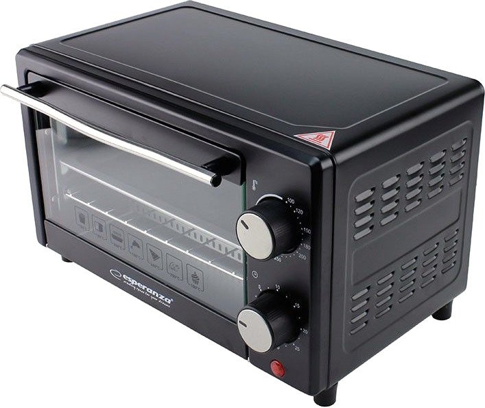 Электрическая печь EKO007 от компании Esperanza объемом камеры 10 литров и мощностью в 900 Вт, имеет регулируемый термостат с выбираемой температурой нагрева от 100 до 250 °С.