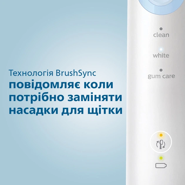 Чистящие насадки изнашиваются со временем, однако технология BrushSync отслеживает длительность и интенсивность использования насадки в этот период. Когда придет время заменить насадку, загорится индикатор, а зубная щетка издаст короткий звуковой сигнал. Таким образом, вы всегда сможете максимально эффективно чистить зубы.- * Характеристики и комплектация товара могут изменяться производителем без уведомления.