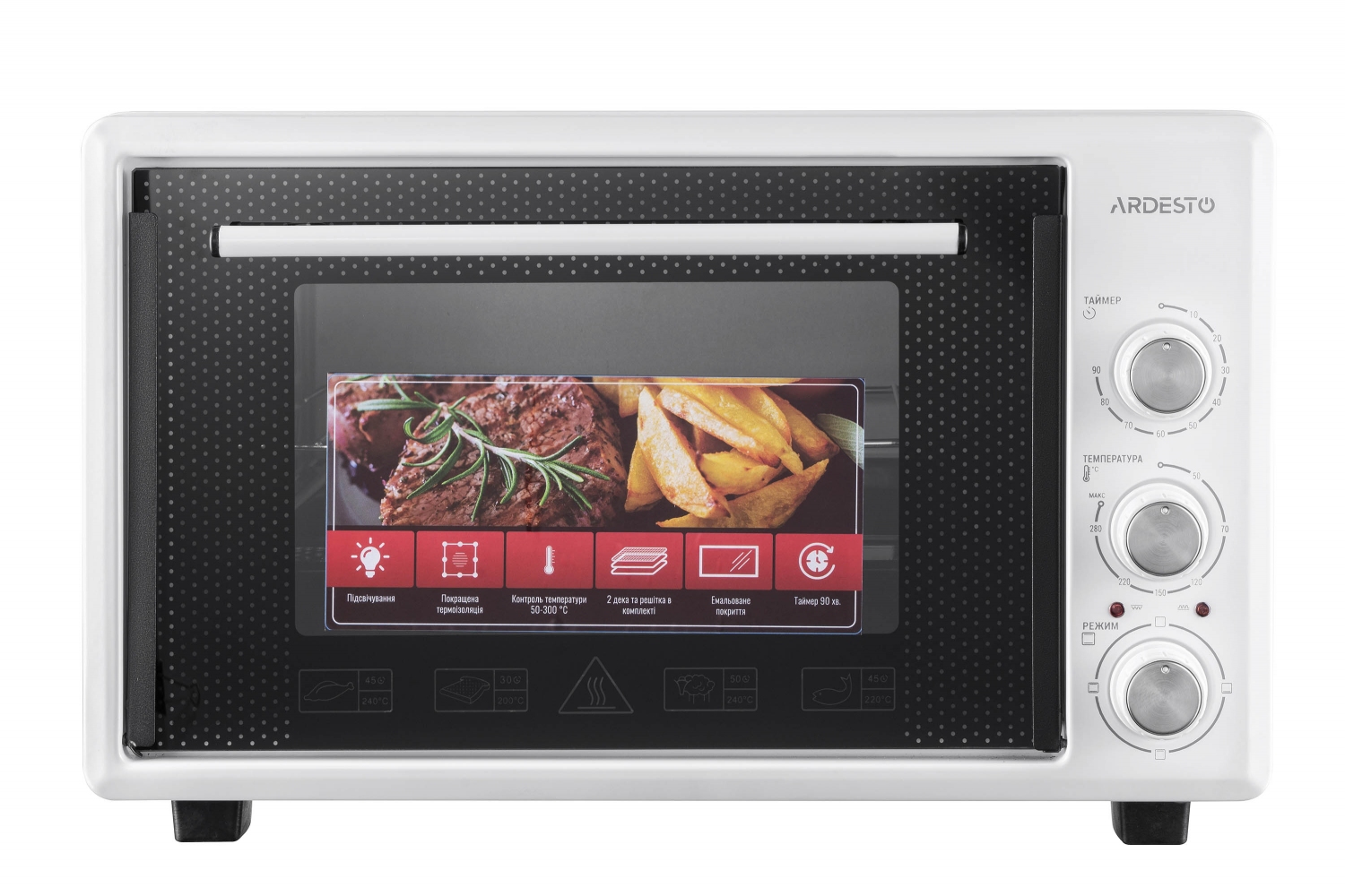 - Характеристики ФункцииФункцииФункции и специальные программыВерхний + Нижний нагрев , Нижний нагрев , Верхний нагрев , ГрильГабариты, Цвет, ВесШирина518 ммВысота315 ммГлубина40 ммВес10.67 кгЦветОбщие характеристикиОсобенностиИндикация окончания процесса приготовления , Таймер , С автовыключением , Внутренняя подсветка , Звуковой сигналГарантияГарантия: 12 месяцев от производителяТип открытия дверцыРучкойКомплектацияПротивень круглый , Противень прямоугольный , Электрическая печь , Решетка для приготовления на гриле , ИнструкцияОбъемМощность1300 ВтТип управленияКлассификацияТип
