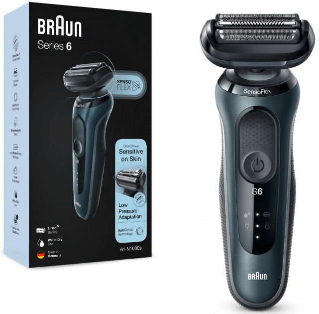 Braun Series 6 61-N1000s BLACK / BLACK - точность и комфорт для кожи: дерматологически протестированная поворотная головка SensoFlex и лезвия SensoFoil предназначены для минимизации давления на чувствительную кожу. Эффективен даже при жесткой щетине: технология AutoSense анализирует щетину и регулирует мощность в зависимости от ее густоты, захватывая и подравнивая больше волос при каждом бритье.