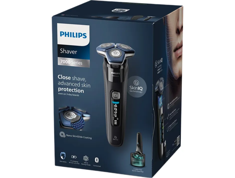 Philips S7886/55 — электробритва серии 7000 с технологией SkinIQ, предназначенная для сухого и влажного бритья. Оснащена плавающими головками, которые поворачиваются на 360° для оптимального контакта с кожей, а также лезвиями SteelPrecision, производящими до 90 000 движений в минуту.