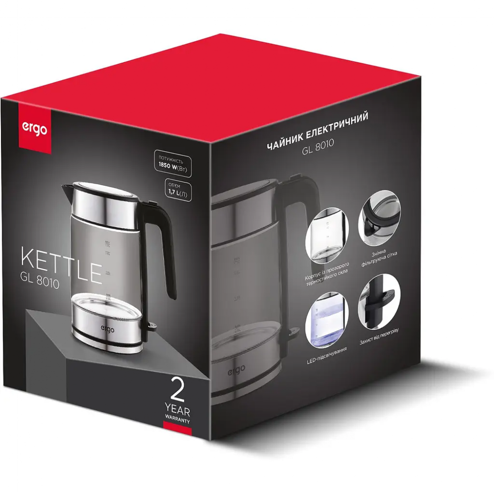 Стеклянный корпус чайника в сочетании с нержавеющей сталью – выбор пользователей, которые ценят экологические и безопасные материалы для изготовления кухонных приборов. Классический вид и сдержанный цвет в дизайне позволяют вписать этот чайник в любой кухонный интерьер.