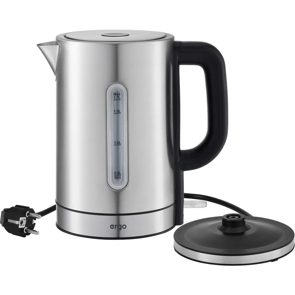 Корпус из нержавеющей матовой стали выглядит стильно и отличается высокой механической прочностью. Для контроля закипания воды на корпусе чайника расположено вертикальное смотровое окошко. Объем воды в чайнике составляет 1.7 литра. Классический дизайн этого чайника делает его удачным элементом в интерьере любого кухонного стиля.