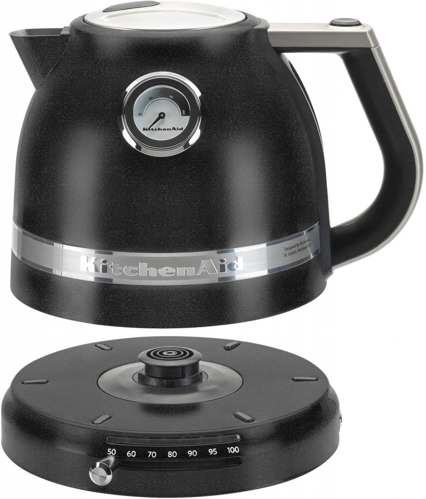 Электрический чайник KitchenAid Artisan — это синергия функциональности и эргономичности. Кухонный девайс оснащен вращающимся основанием, поэтому ставить его можно из любой удобной точки, «не прицеливаясь» к подставке. Среди других особенностей конструкции можно выделить: Двустенный электрочайник KitchenAid оснащен функцией регулировки и поддержания температуры воды. С помощью удобного термометра, расположенного на боковой стенке, можно в любой момент узнать точную температуру внутри емкости. Наслаждайтесь работой чайника KitchenAid, каждый день. Безотказный и удобный, он будет радовать вас долгие годы.