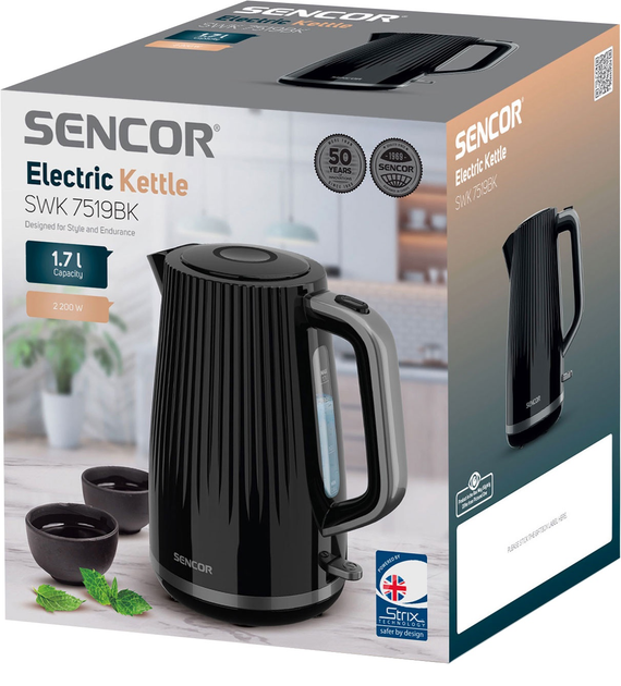 SENCOR SWK 7519BK – это стильный и мощный электрочайник, выполненный в глубоком черном цвете, который придает кухне современный вид. Его лаконичный дизайн гармонично сочетается с любым интерьером, а качественные материалы обеспечивают долговечность.