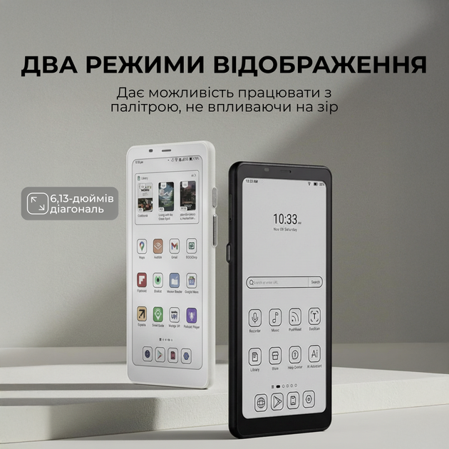 6,13-дюймовый цветной экран E Ink Kaleido 3 обеспечивает отображение текста и изображений, максимально приближенное к бумаге. Он не бликует на солнце и снижает нагрузку на глаза, что особенно важно при длительном чтении. Встроенная подсветка с регулировкой яркости позволяет комфортно пользоваться устройством в любое время суток.