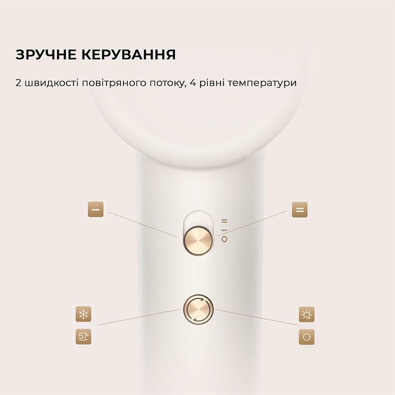 Фен Dreame Hair Dryer Gleam имеет 4 температурных режима и 2 регулируемые скорости, что позволяет максимально удобно и точно настроит фен под сушку любых типов волос.