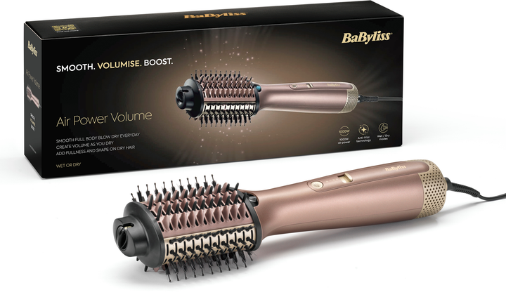 Фен-щетка Air Power Volume придает объем и гладкость вашим волосам, создавая упругий и густой вид как на влажных, так и на сухих волосах.
