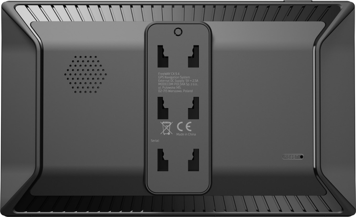 GPS навигатор Modecom Device FreeWAY CX 9.4 надежно фиксируется к панели автомобиля с помощью вакуумной присоски.- * Характеристики и комплектация товара могут изменяться производителем без уведомления.