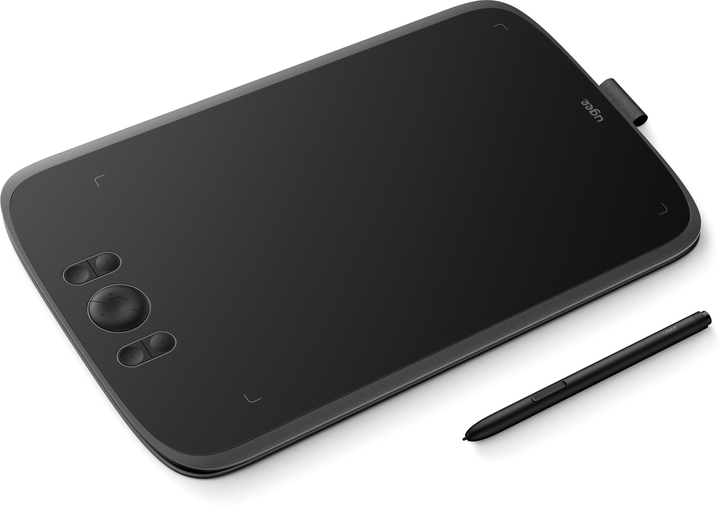 Планшет оснащён активной зоной формата A5, поддерживает 16 384 уровней силы нажатия и распознаёт наклон пера до ±60°. Стилус работает по технологии EMR — ему не требуется батарейка. Высокая скорость отклика обеспечивает плавные линии и точное управление. Восемь программируемых клавиш позволяют настроить быстрый доступ к основным инструментам.