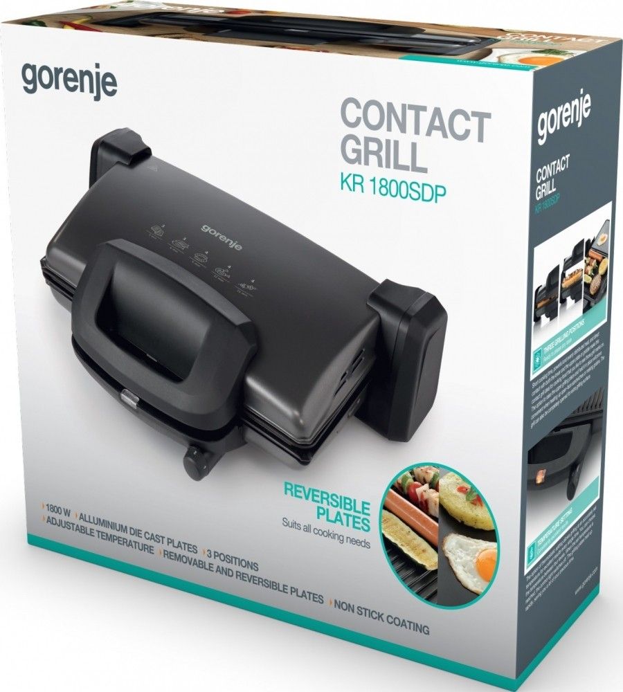 Гриль KR 1800 SDP от компании GORENJE мощностью 1800 Вт не занимает много места на кухне и подходит для приготовления самых разных блюд. Прибор оснащен антипригарными пластинами, благодаря чему блюда не пригорят.