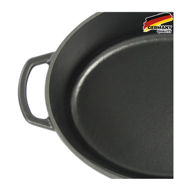 Выдерживает температуру до 300°C, подходит как для жарки, так и для длительного тушения мяса в собственном соку.