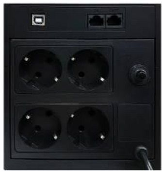 Благодаря наличию встроенного стабилизатора напряжения поддерживает выходное напряжение в пределах нормы при постоянно пониженном напряжении электросети, не используя ресурс аккумулятора. В ИБП предусмотрено 4 выходных разъема с батарейной поддержкой. Коммуникационный порт для связи с компьютером позволит своевременно завершить работу системы с сохранением данных.
