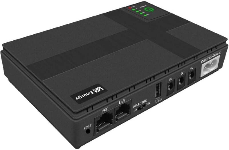 Универсальный источник питания со встроенным литиевым аккумулятором на 10400мА•ч. Прекрасное решение при необходимости обеспечить питанием при отсутствии света или в полевых условиях совершенно разные устройства. За счет набора выходов под разный вольтаж и с разными интерфейсами, пользователю облегчается процесс использования: больше не нужно искать специальные переходники, специфические блоки питания, придумывать подключение инверторов, трансформаторов и т.д. Достаточно выбрать один из необходимых интерфейсов: USB 5V/2A, DC 5V/2A, DC 9V/1A, DC 12V/1A, POE 15V/0.6A, POE 24V/0.6A - максимальная выходная мощность - 18Вт. Этого достаточно для подключения телефонов, планшетов, зарядки радиостанций, питания камер видеонаблюдения, устройств с Passive PoE (15 или 24В). Идеальный вариант, если вам необходимо на дому обеспечить резервное питание роутера, LED-подсветки, камеры 5 или 12В, для кемпигна, в качестве портативной зарядной точки в автомобиль. Зарядка устройства также выполнена с учетом того, что может произойти так, что заряжать придется не там, где вам комфортно, а там и так, как придется. Соответственно, вы можете использовать входное напряжение 85-265В(AC) 50-60 Гц. С весом всего 390г и размерами 160х105х33мм, этот девайс пригодится всем, кто постоянно нуждается в наличии резервного питания как для работы, так и просто для использования на дому.