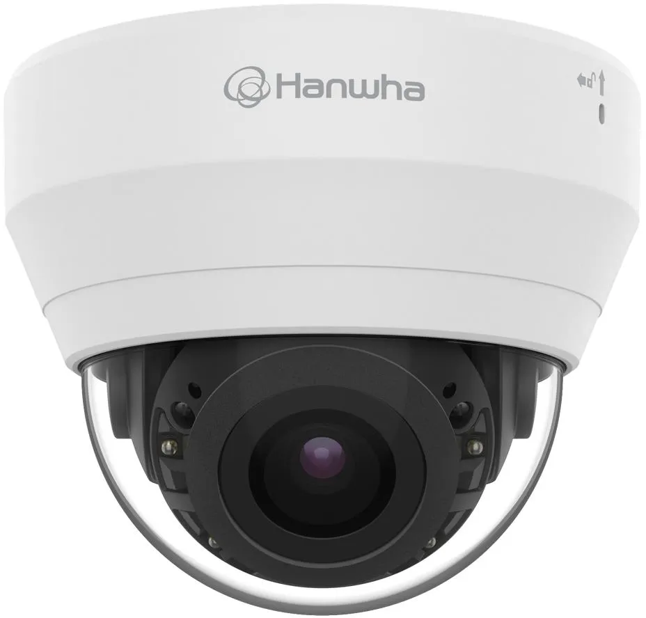 Hanwha Techwin QND-6082R — сетевая купольная ИК-камера разрешением 2 Мп (1920×1080) с моторизованным вариофокальным объективом 3.2-10 мм и ИК-подсветкой до 20 м. Поддерживает кодеки H.265, H.264 и MJPEG, многопотоковую передачу, режим “коридора” (Hallway View 90°/270°), автоматический режим день/ночь (ICR), широкий динамический диапазон (WDR 120 дБ). Минимальная освещённость: 0,03 лк (цвет), 0 лк (ч/б с ИК). Есть слот micro SD/SDHC/SDXC до 128 ГБ, питание PoE (IEEE 802.3af, класс 3) или 12 В DC. Размеры Ø119,8×98,8 мм, вес ≈0,32 кг. Отличное решение для мониторинга помещений с высоким качеством изображения и экономией дискового пространства.