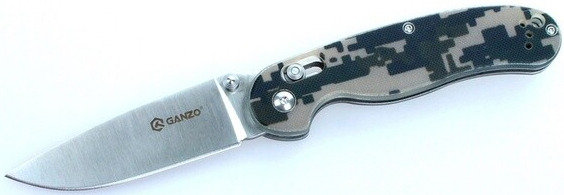 Лезвие ножа сделано из нержавеющей стали, что также большой плюс для ножа, который используется на природе. В данной модели используется марка стали 440С, которая помимо высокой сопротивляемости коррозии отличается еще и довольно большой твердостью (около 58 единиц Роквелла). Заточен нож гладко, что дает возможность резать ним практически любые продукты и материалы. Ganzo G727M долго остается острым и легко затачивается даже при помощи карманной точилки в полевых условиях. Размеры клинка составляют 8.9 см при общих габаритах ножа 21 см. Зато в сложенном положении инструмент имеет размеры всего 12 см. Толщина лезвия в районе обуха составляет 3.5 мм.