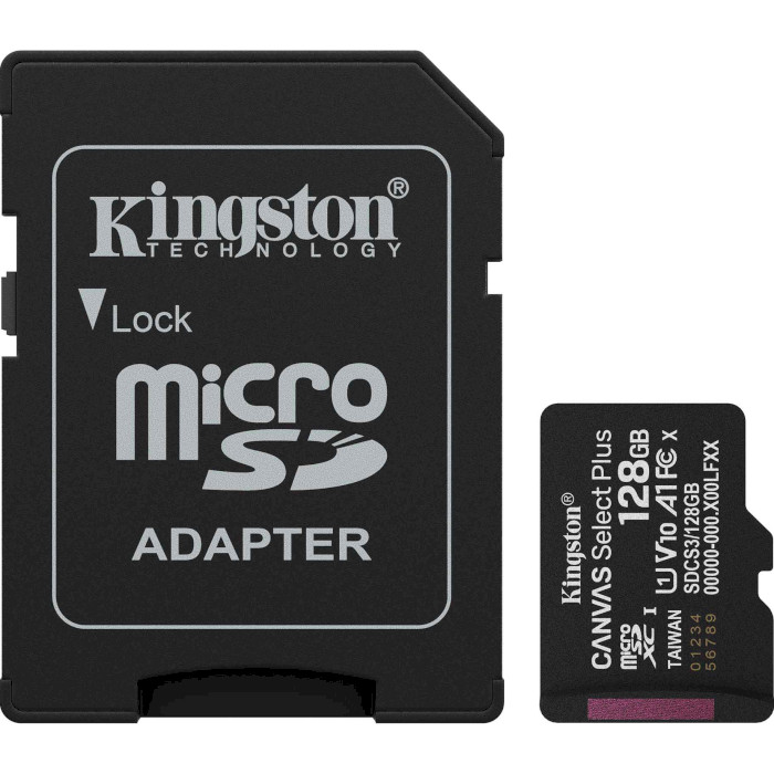 Карта памяти Kingston Canvas Select Plus microSDXC 128GB UHS-I U1 V10 + SD-адаптер (SDCS3/128GB)