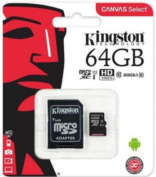 Реализуйте свои видеозаписи в формате HD!Карта памяти microSD Canvas Select компании Kingston создана с наивысшими требованиями к надежности, что делает ее идеальной для съемки фильмов в HD-формате и фотографий с высоким разрешением.