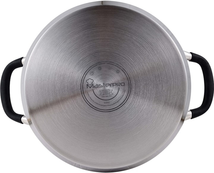 Ручки из нержавеющей стали надежно прикреплены методом точечной сварки. На ручках черные силиконовые накладки Soft touch, не скользящие и не нагревающиеся.Подходит для всех типов плит, в т.ч. индукционность.