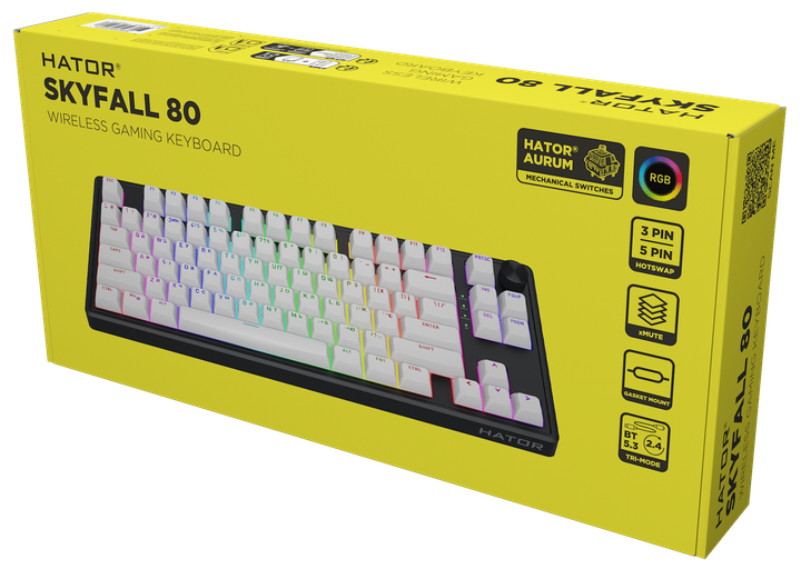 HATOR Skyfall Wireless – полностью оптимизированная клавиатура для гейминга, воплотившая лучшие технологии киберспортивного класса. Уникальная геометрия, надежные механические переключатели HATOR® Aurum, простая замена клавиш и RGB-подсветка, настраиваемая под ваш стиль геймплея, – она прекрасно подойдет для каждого геймера. А с помощью фирменного программного обеспечения вы сможете полностью персонализировать ее под ваш характер игры.