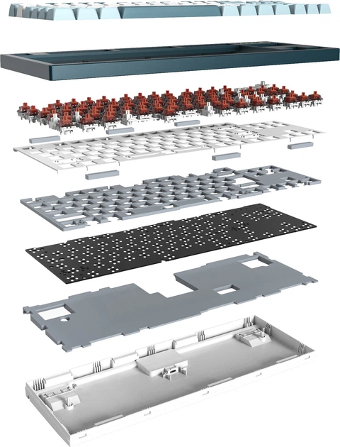 Montech MKey — это настоящее удовольствие для глаз и слуха, которое звучит значительно лучше, чем можно ожидать от его класса. Клавиатура впечатляет переключателями, смазанными на заводе, амортизирующей прокладкой под пластиной и силиконовым демпфером, что обеспечивает комфортный и приятный набор текста.