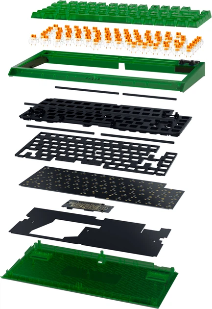- Горячая замена переключателей: Предустановленные тактильные переключатели Razer 3-го поколения (оранжевые). Совместимость с 3- и 5-контактными переключателями позволяет легко настроить тактильные характеристики под себя