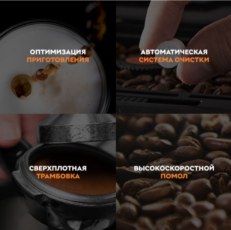 17 предварительно запрограммированных рецептов с возможностью дополнительной настройки- 7 напитков на основе черного кофе: Эспрессо, Двойной эспрессо, Большой кофе, Двойная порция большого кофе, Ристрето, Американо, Допио.