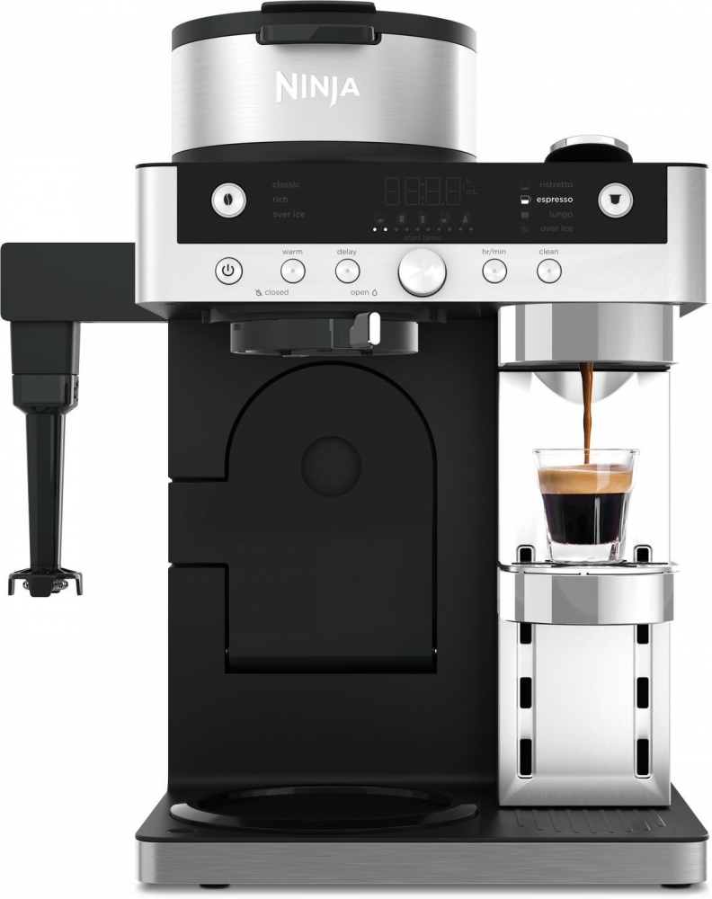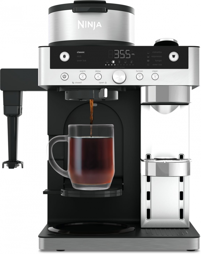 Готовьте кофе не по расписанию, а по настроению с кофеваркой Ninja Prestige Dualbrew System CFN802EU! В течение недели нужна большая чашка кофе, чтобы включиться в рабочий ритм. В выходные хочется легкого капучино после завтрака. А вечером уместен кофе с молоком или холодный напиток со льдом. Устройство работает и с молотым кофе, и с капсулами, что позволяет выбирать формат напитка и точный объем среди 10 вариантов порций. Стеклянный графин на 1,8 л удобен для семейных завтраков, встреч с друзьями или работы из дома. А встроенный вспениватель молока позволяет быстро менять стиль напитка с классического черного кофе на мягкие молочные варианты.