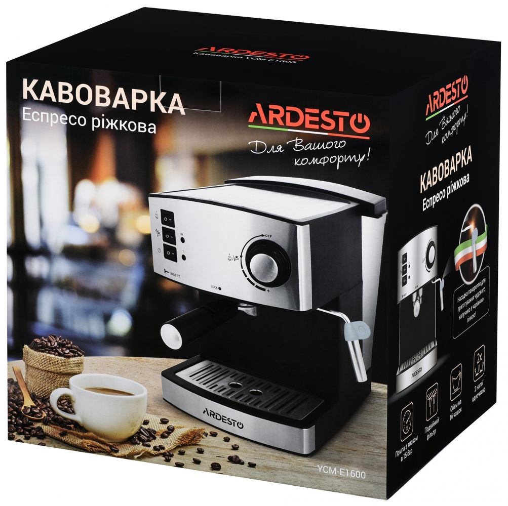 Кофеварка эспрессо Ardesto YCM-E1600 – новый чудо-прибор, позволяющий легко приготовить кофе. Взгляните на этот элегантный строгий дизайн – он так и манит выпить ещё одну чашечку бесподобного кофе.