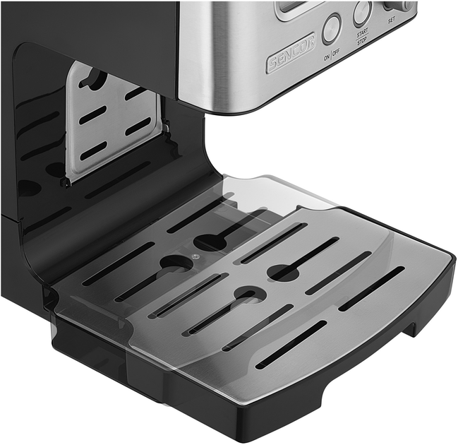 Одним из ключевых преимуществ Sencor SES4090SS является быстрый предварительный нагрев и удобство в приготовлении – с помощью только одного прикосновения вы можете приготовить эспрессо, двойное эспрессо, капучино, латте или просто вспененное молоко. Прозрачный резервуар для молока со съемным вспенительным устройством легко моется, что является важным преимуществом в ежедневном использовании. Устройство имеет держатели из нержавеющей стали на 1 и 2 чашки, что позволяет готовить кофе сразу для двух человек. Для удобства кофеманов предусмотрен подогрев чашек, что помогает сохранить оптимальную температуру дольше. А благодаря функции запоминания размера кофе кофеварка запомнит ваши предпочтения и автоматически приготовит напиток нужного объема.