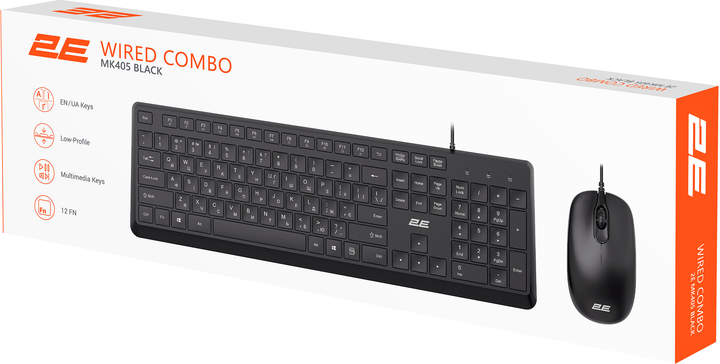 Комплект качественной, надежной, проводной периферии 2E MK405 станет отличным дополнением к персональному компьютеру. Набор состоит из мембранной клавиатуры и мыши, оба устройства подключаются через интерфейс USB-A и поддерживают технологию Plug and Play, что позволяет легко подключить их к компьютеру без необходимости установки дополнительного программного обеспечения. Наилучшим образом комплект 2E MK405 пригодится для тех, кто ищет удобное и простое решение для повседневной работы или обучения.