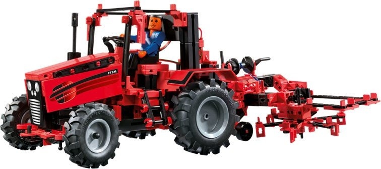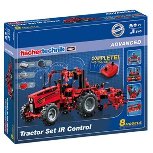 Конструктор ADVANCED Tractor Set IR Control – большой набор для детей от семи лет. Из него можно собрать целых восемь моделей: трактор и разные вспомогательные агрегаты. В комплекте конструктора 540 деталей, приемник и пульт дистанционного управления. Трактор с помощью четырехканального пульта дистанционного управления будет передвигаться с разной скоростью, поворачивать и контролировать еще два дополнительных двигателя (в комплект не входят). Конструктор создан компанией Fischertechnik, которая занимается изобретением и производством обучающих конструкторов. Этот набор необходим каждому ребенку для развития у него мышления, понимания работы простых механизмов. Кто знает, возможно, в будущем из вашего малыша вырастет гениальный конструктор, дизайнер или преподаватель, а сегодня просто необходимо натолкнуть его в правильное русло и разрешить заниматься полезными речами. Полезные игры, развивающие у детей мышление и усидчивость – вот что необходимо маленьким гениям, которые будут в будущем строить новый интересный мир. Линейка конструкторов компании Fischertechnik создана именно для заботливых родителей, которые хотят вырастить из своих детей самостоятельных и думающих личностей.