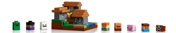 В набор также входят восемь микро фигурок: Стив, Алекс, Скелет, Ведьма, Крипер, Поселенец, Корова и Свинья. Мини-модели и микрофигурки можно снять с основной модели, чтобы отобразить модель в разных вариантах.