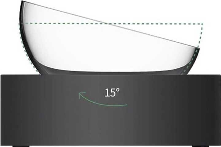 Оригинальная конструкция кормушки позволяет использовать два угла наклона. Вы можете установить миску ровно или наклонив на 15°. Подставка поднимает емкость на 7 см от пола. Такое расположение вместе с небольшим наклоном чаши уменьшает давление на шейные позвонки и обеспечивает питомцу больше комфорта во время еды.