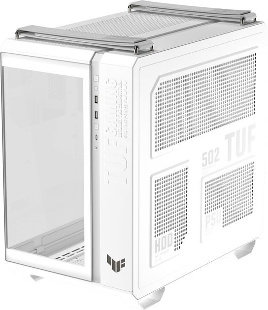 TUF Gaming GT502 Horizon ARGB продолжает линейку ПК-оптимизаций «сделай сам» с боковыми панелями, которые можно снять, просто нажав кнопку, скрытую на задней панели корпуса.