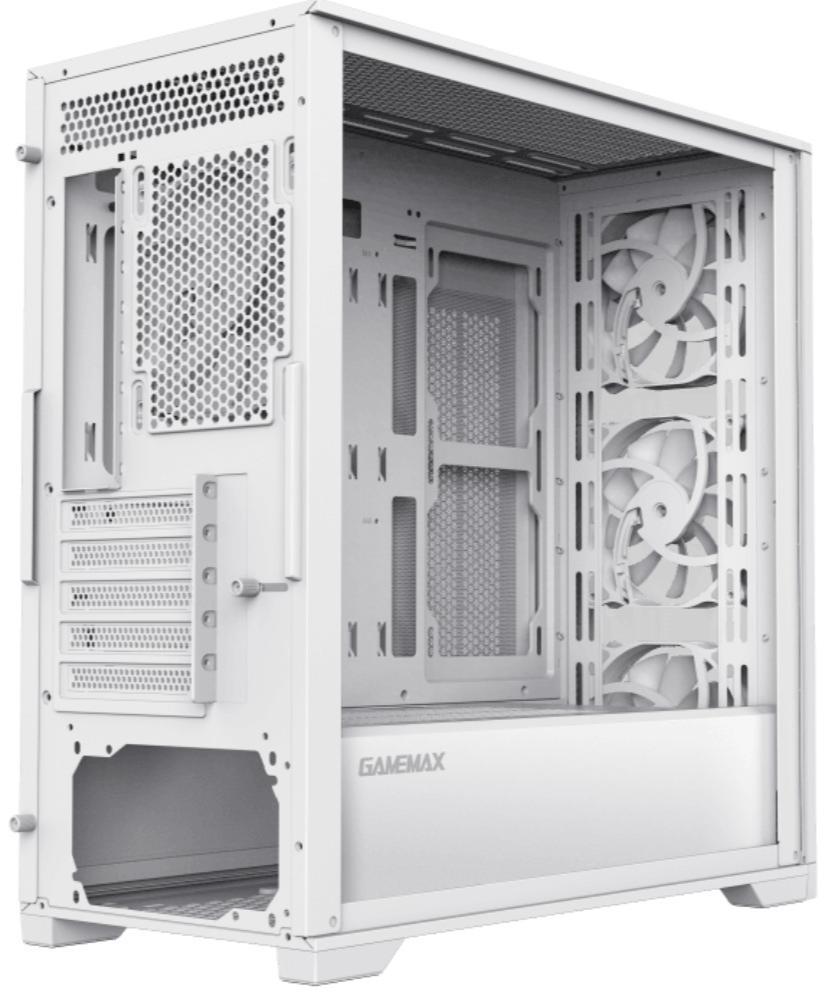 GameMax Destroyer TG Black Micro-ATX корпус для игрового ПК, имеет 2 закаленных стекла спереди и по бокам, верхнюю поддержку 360 жидкостного кулера процессора, предварительно установлены 4 вентилятора ARGB, демонстрирует компоненты ПК и ARGB-освещение. Это поможет вам построить самое крутое компьютерное шасси.
