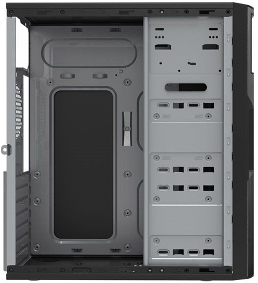 Шасси изготовлено из SECC стали толщиной 0.4 мм и окрашено в черный цвет. Благодаря использованию высокопрочной стали корпус не гнется и не гремит. Аккуратная обработка краев не позволит пораниться при установке комплектующих в корпус. Лицевая панель выполенна из пластика черного цвета, что позволит избежать неаккуратных царапин на корпусе.